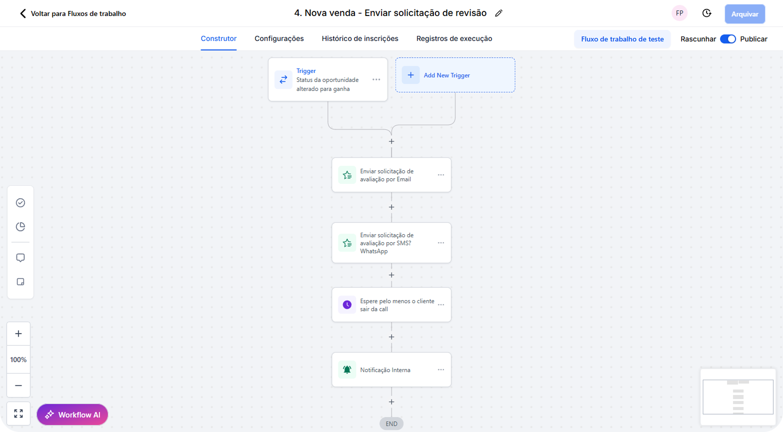 Sim, é isso mesmo. Dentro da mesma ferramenta você pode criar campanhas ou automações de contato para seus leads, bem como um workflow contínuo de marketing e relacionamento com o cliente.